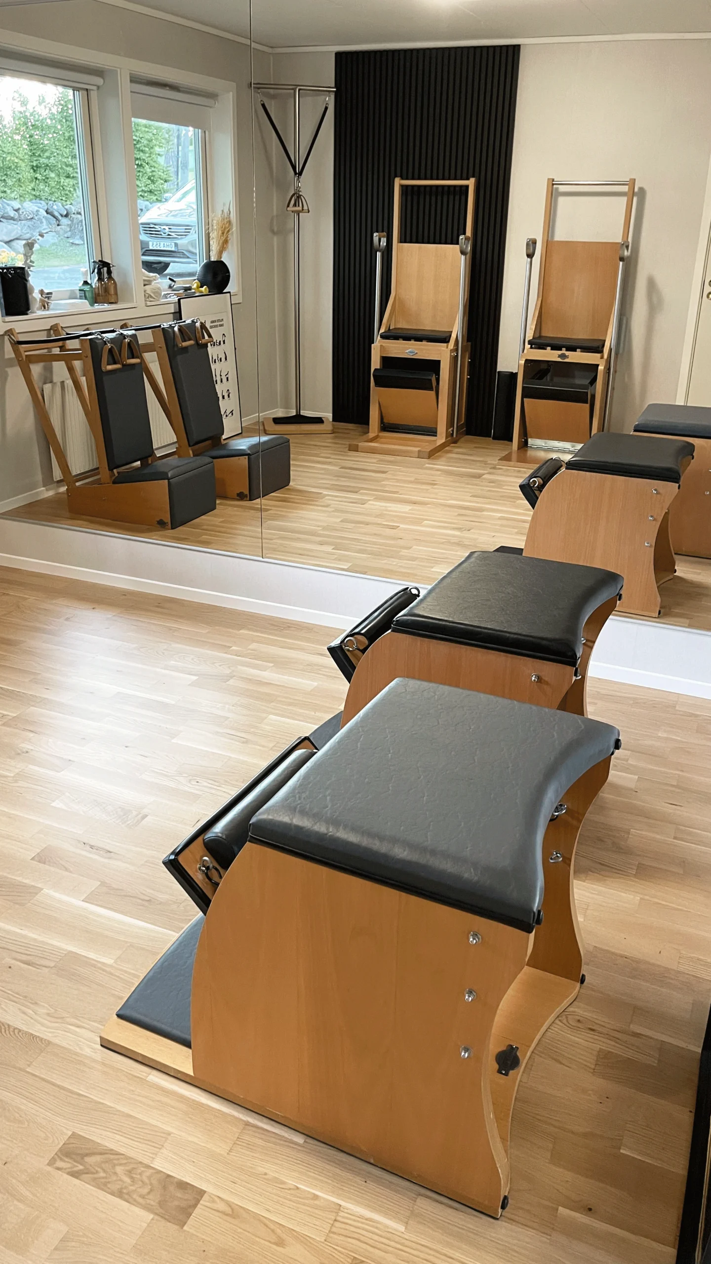 Step into a space fully dedicated to the authenticity of Classical Pilates. Our studio is equipped with the complete system of original apparatus — from the Reformer and Cadillac to the Wunda Chair and Pedi Pole — creating the ideal environment to practice with precision and depth.